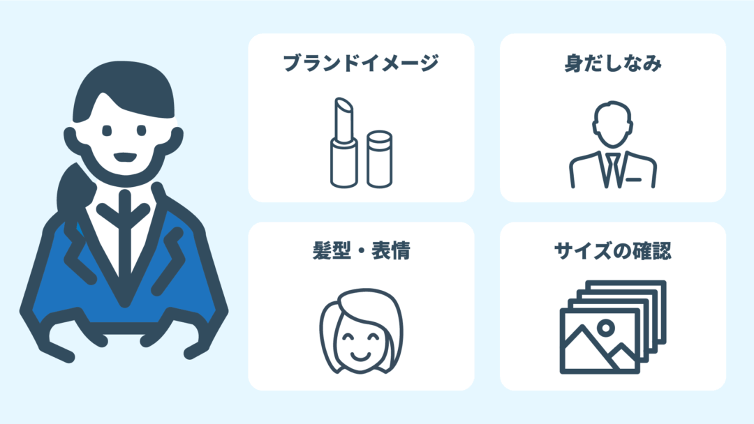 特に、写真を通じて「この人ならブランドの価値を顧客に伝えられる」と感じてもらうことがポイントとなるため、ブランドイメージにマッチした雰囲気を表現することが求められます。また、プロ意識を感じさせる清潔感のある身だしなみは、顧客や採用担当者に信頼を与える基本であり、髪型や服装、表情まで細部に配慮することが大切です。