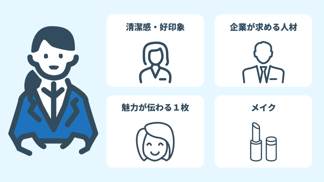 そのためには、企業が求めているイメージであることも大切ですので、男女ともに清潔感のあるヘアメイクを心がけて撮影しましょう。