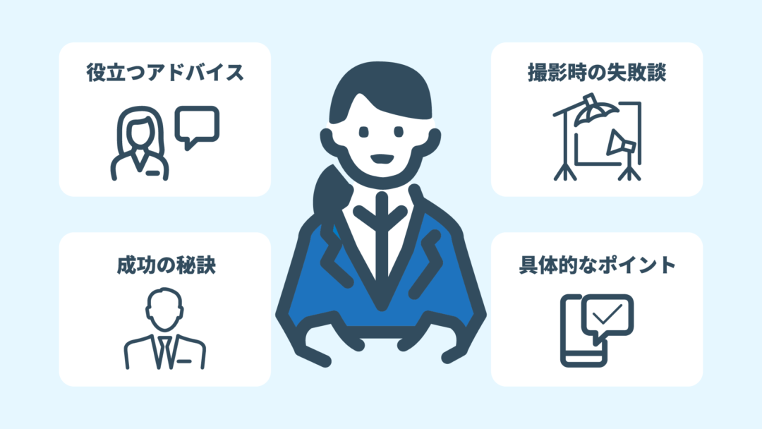この記事では、就活写真ドットコム編集部へのインタビューを通じて、「撮影時の失敗談」「成功の秘訣」「具体的なポイント」を詳しく解説します。先輩たちのリアルな体験談をもとに、就活写真にまつわる疑問や不安を解消し、あなたの個性や魅力をしっかりと伝えられる一枚を準備し、自信を持って就職活動に挑みましょう!