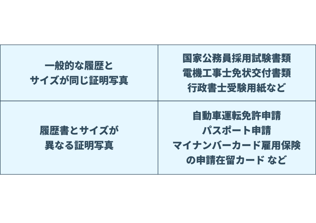 一般的な履歴書の写真と同じサイズと異なるサイズ一例