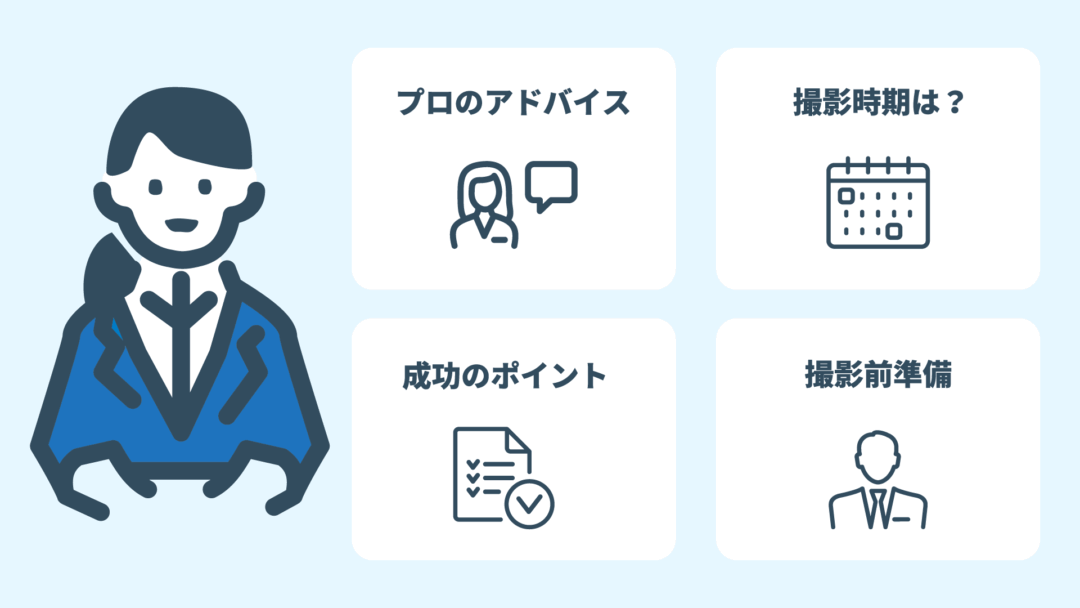 また、家族や友人からアドバイスをもらうと、より客観的な視点で自分を捉えられるため、撮影当日に自信をもって撮影にのぞめるでしょう。