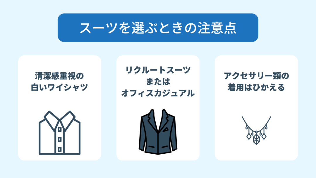 一般的な企業に応募する場合も、新卒生はリクルートスーツ、職種や転職者はスーツ以外にもオフィスカジュアルを着用することがあります。